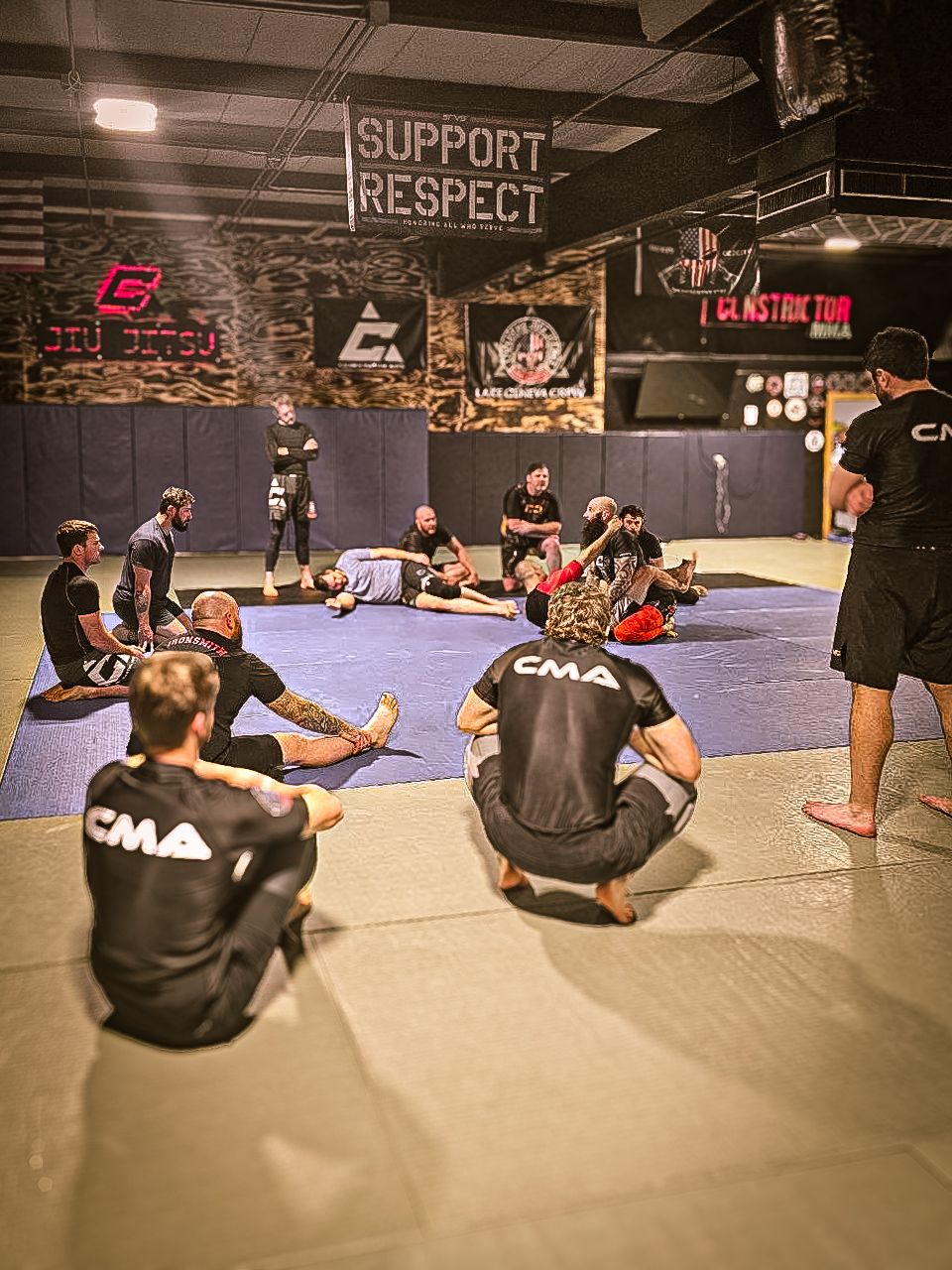 Once a month, our adult fundamentals and advanced classes transform into a Combatives Class. Here, we train with gloves and focus on a more street-realistic fighting style. It's a great way to apply your skills in a practical, real-world scenario.